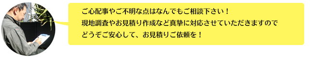 お家の傷み具合、塗料のグレード、現場の環境とお見積書ご納得いくまで、ご説明し、どんなご質問にもきちんとお答えいたします。 お気軽にご相談・ご質問ください。 |