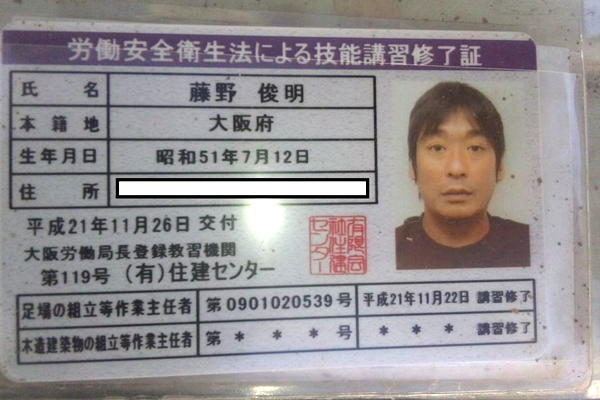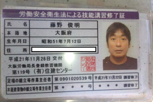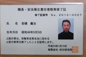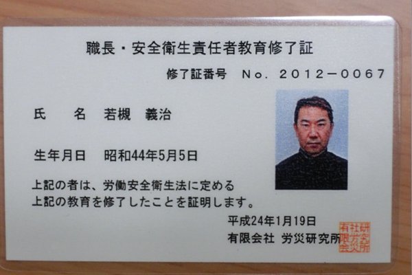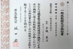 一級技能検定合格証書/職長・安全衛生責任者教育終了証