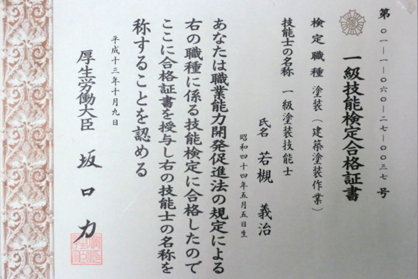作業する多くの職方が塗装の国家資格保有者ばかりですので